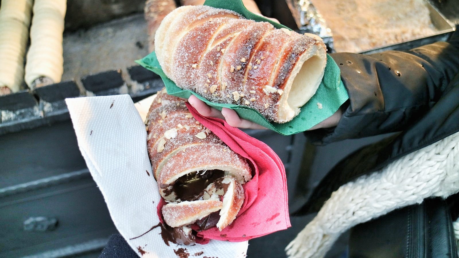 After the visit of the museum, we reached the Wenceslas Square that had been turned into a huge Christmas Market. There we finally tried a Czech specialty: the Trdelník, a rolled pastry topped with sugar, nuts and cinnamon. I couldn’t finish because it was too sweet for me and I wasn’t really hungry… Then, we walked ending up in another Christmas Market, in the Old Town of Prague. It was 4:30pm and already night time!
